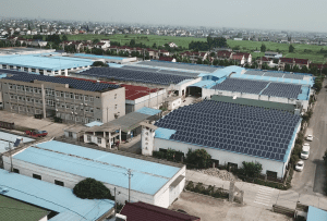 位于興化市戴南鎮南環開發區, 2022年7月安裝712.8KW光伏電站,至今累計發電120多萬度。